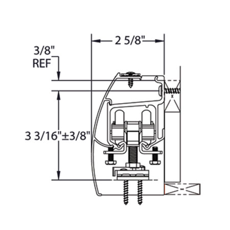 For the best results in Healthcare or Hospitality environments, DoorwaysPlus.com recommends ensuring the wall mounting surface is reinforced with solid wood blocking. Because this system is Wall Mounted, the structural integrity of the wall is critical to supporting the 250 lb. door weight. The adjustable fin guide allows for minor floor variations, ensuring the door remains plumb and glides smoothly regardless of the flooring type.